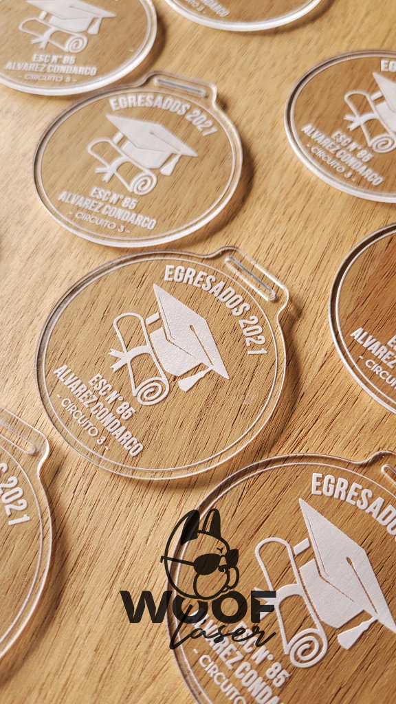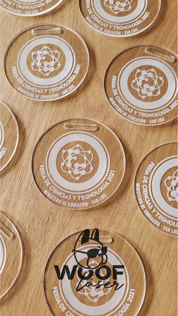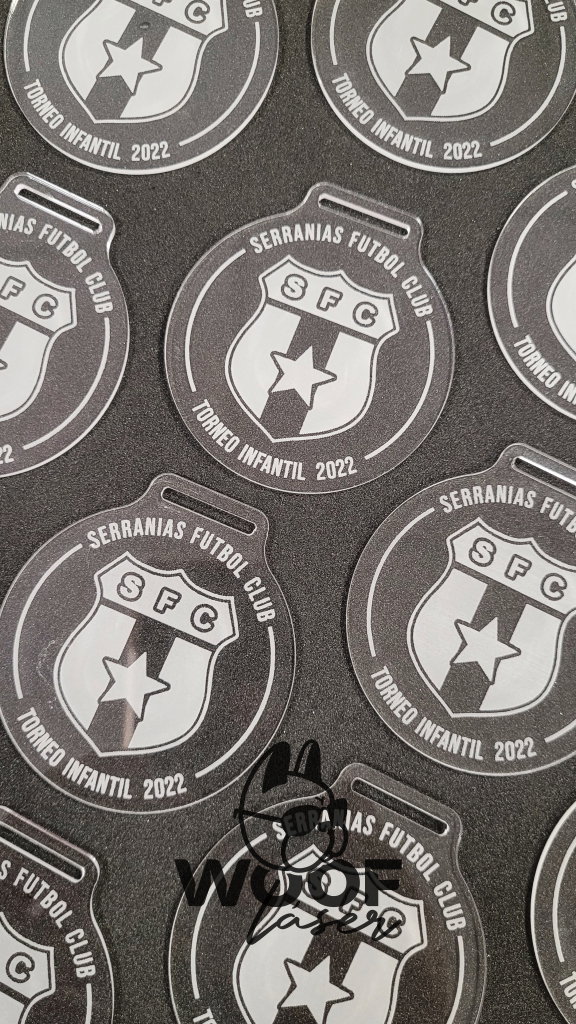 IMPORTANTE: Las medallas se realizan mediante GRABADO LÁSER, el cual deja un color blanco en el caso del acrílico. No podemos grabar en colores.